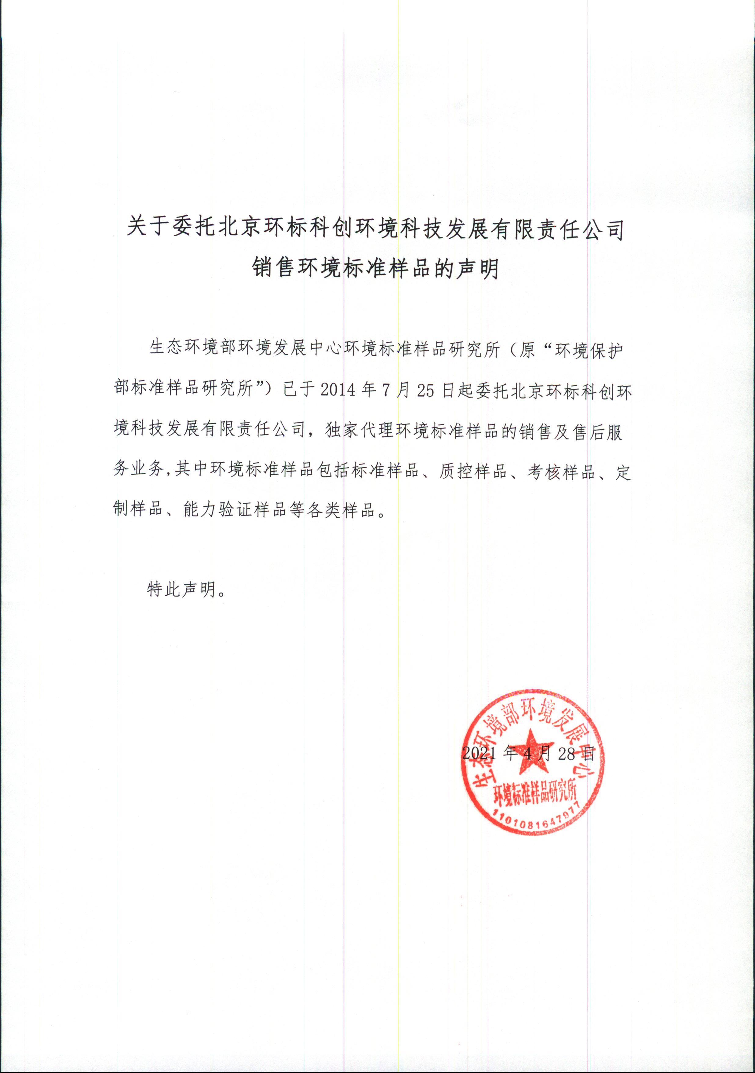 為生態環境部環境發展中心環境標準樣品研究所(簡稱“標樣所” IERM)環境標準樣品獨家代理機構。