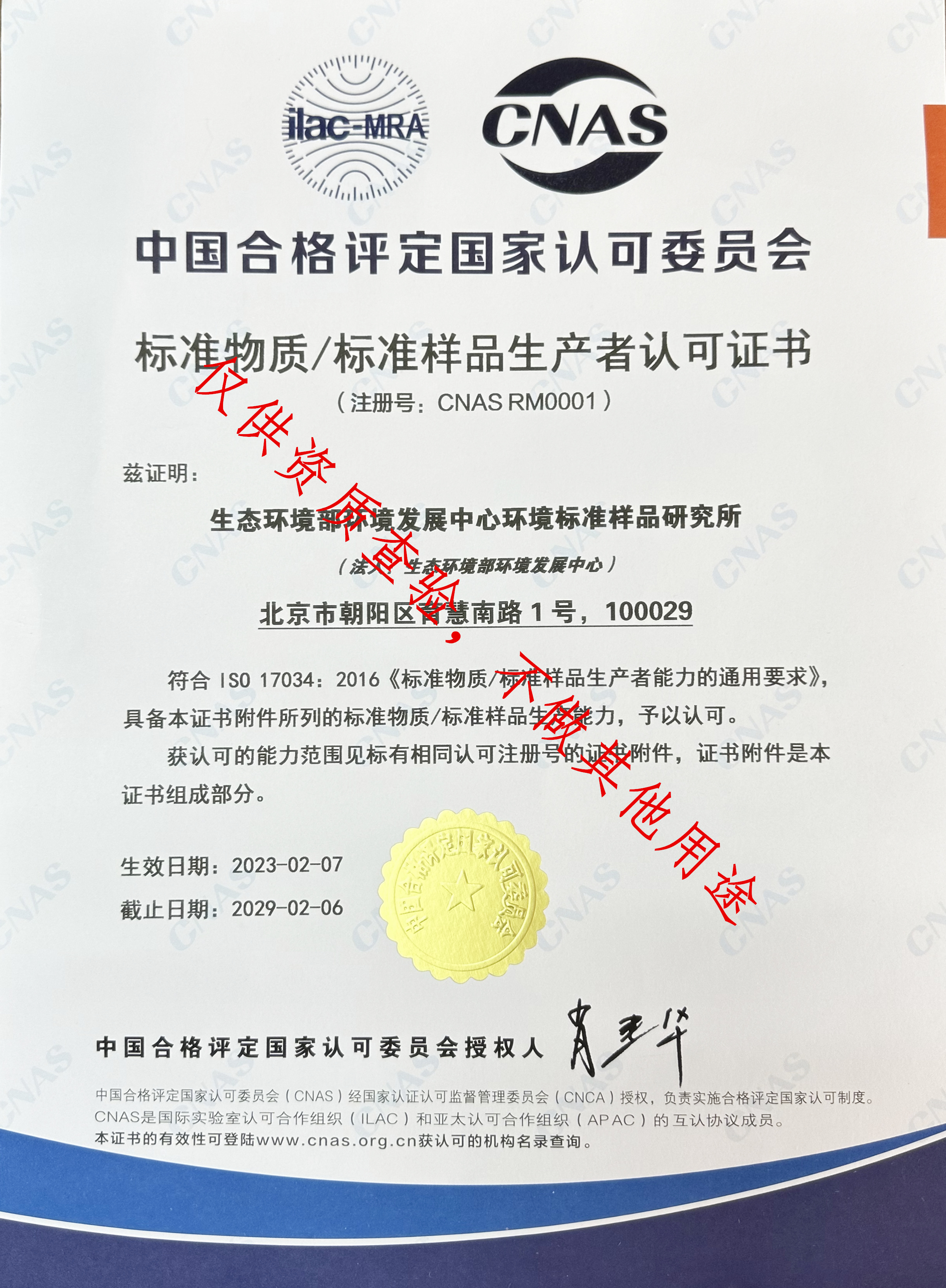 于2005年12月在國內率先獲得中國合格評定國家認可委員會(CNAS)標準物質/標準樣品生產者認可(證書編號為No. CNAS RM0001),